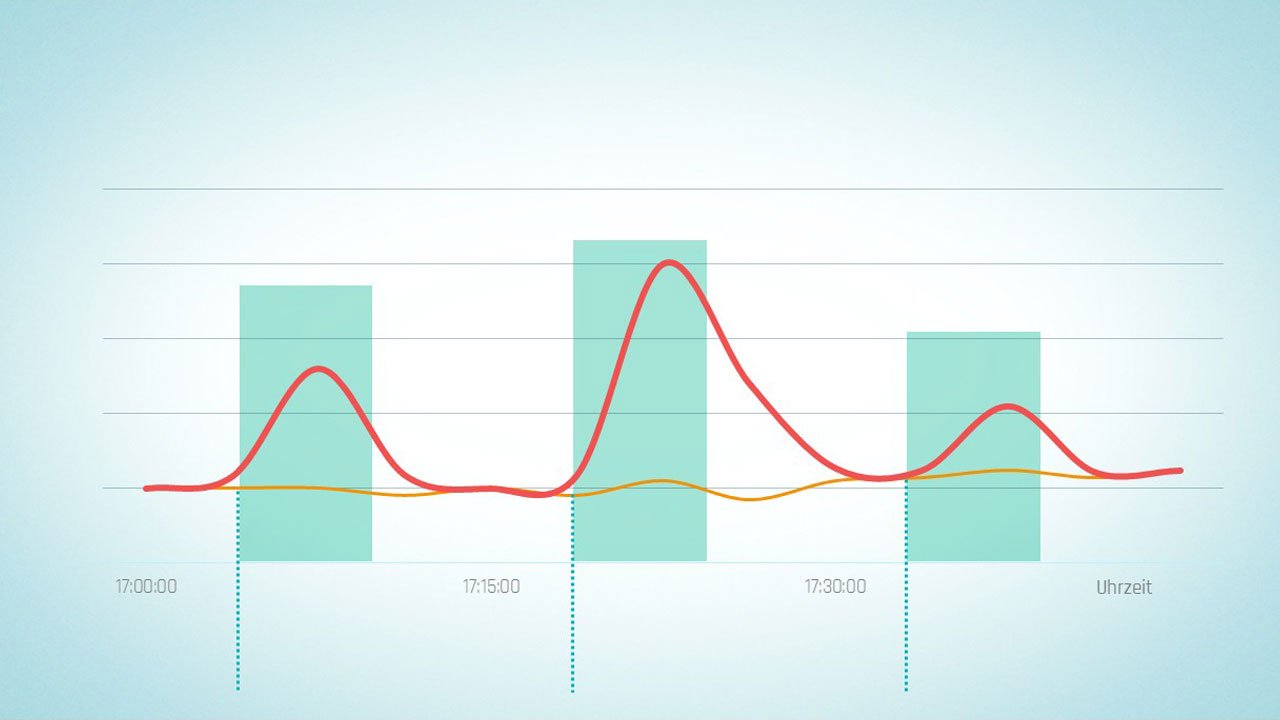 Millionen Menschen nutzen parallel zum Fernsehen einen zweiten Screen und reagieren sofort. TV-Spots erzeugen unmittelbar nach der Ausstrahlung messbaren Website-Traffic. Du siehst sofort, wie der Traffic auf deinen Kanälen steil nach oben geht und welche Sender daran den größten Anteil haben.